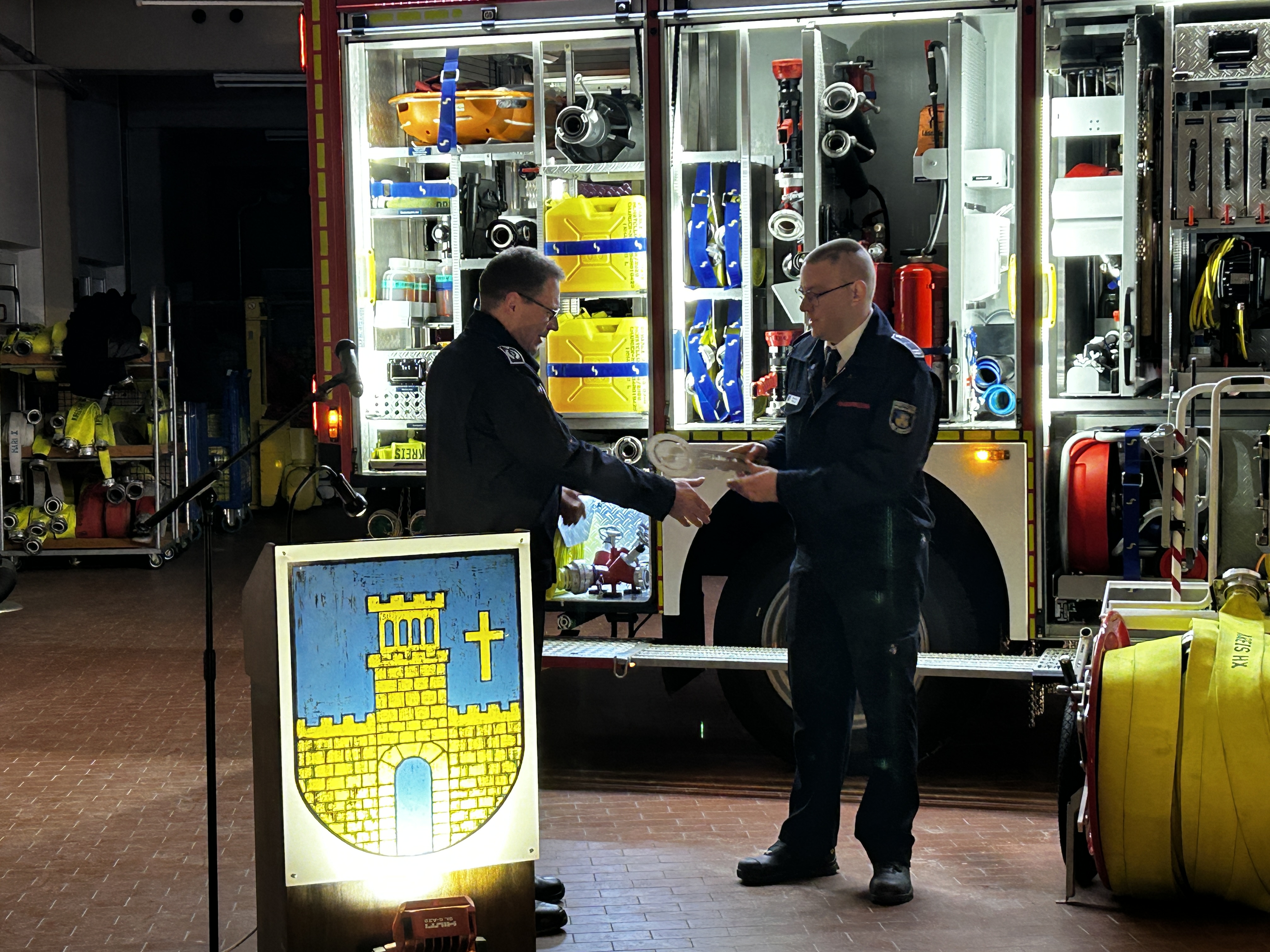 Im Anschluss daran wurde Stadtbrandinspektor Waldemar Gamenik durch den Bürgermeister aufgrund seiner Tätigkeit als langjähriger Leiter der Feuerwehr für sein Engagement zum Ehrenwehrführer ernannt. Wir sagen: HERZLICHEN GLÜCKWUNSCH!