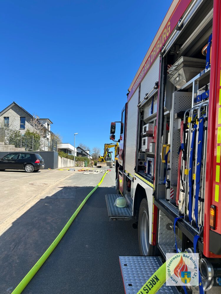 Die Feuerwehr evakuierte vorsorglich die angrenzenden Wohnhäuser und stellte den Brandschutz sicher. Die beschädigte Leitung konnte durch den Energieversorger zügig abgeschiebert und die Gefahr somit beseitigt werden.