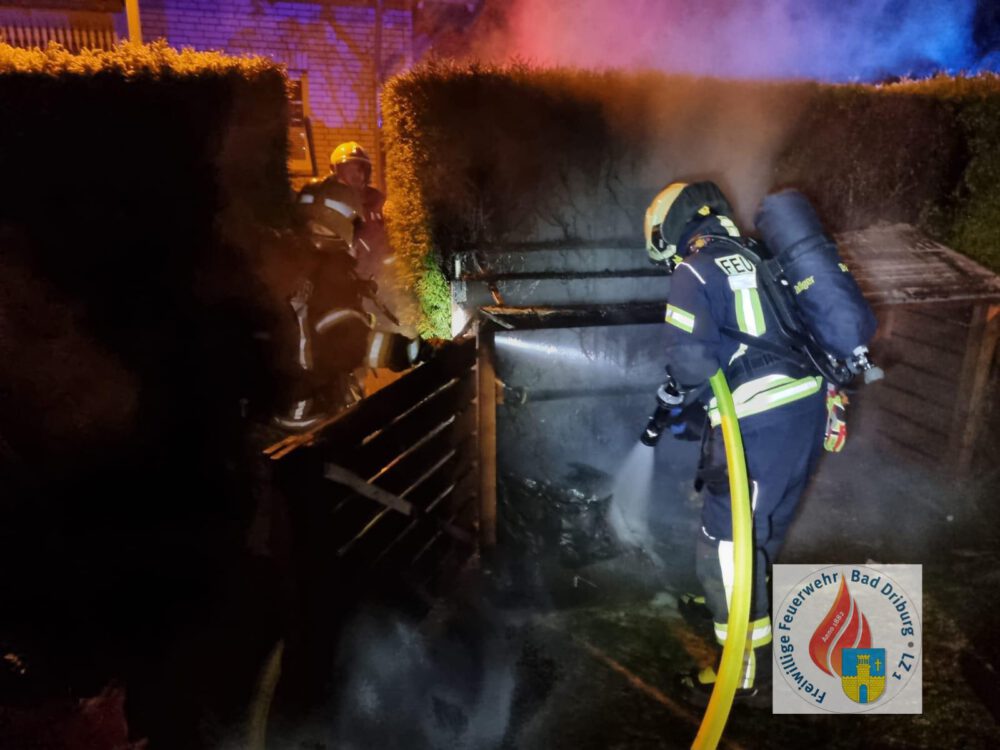 Am heutigen Abend wurde der Löschzug Bad Driburg zusammen mit der Polizei und dem Rettungsdienst zu einem Containerbrand alarmiert. An der Einsatzstelle brannten Mülltonnen unter einem Holzverschlag. Das Feuer hatte bereits auf die angrenzende Hecke übergegriffen. Durch den Anwohner wurden erste Löschmaßnahmen eingeleitet. Der Löschzug führte anschließend Nachlöscharbeiten durch.